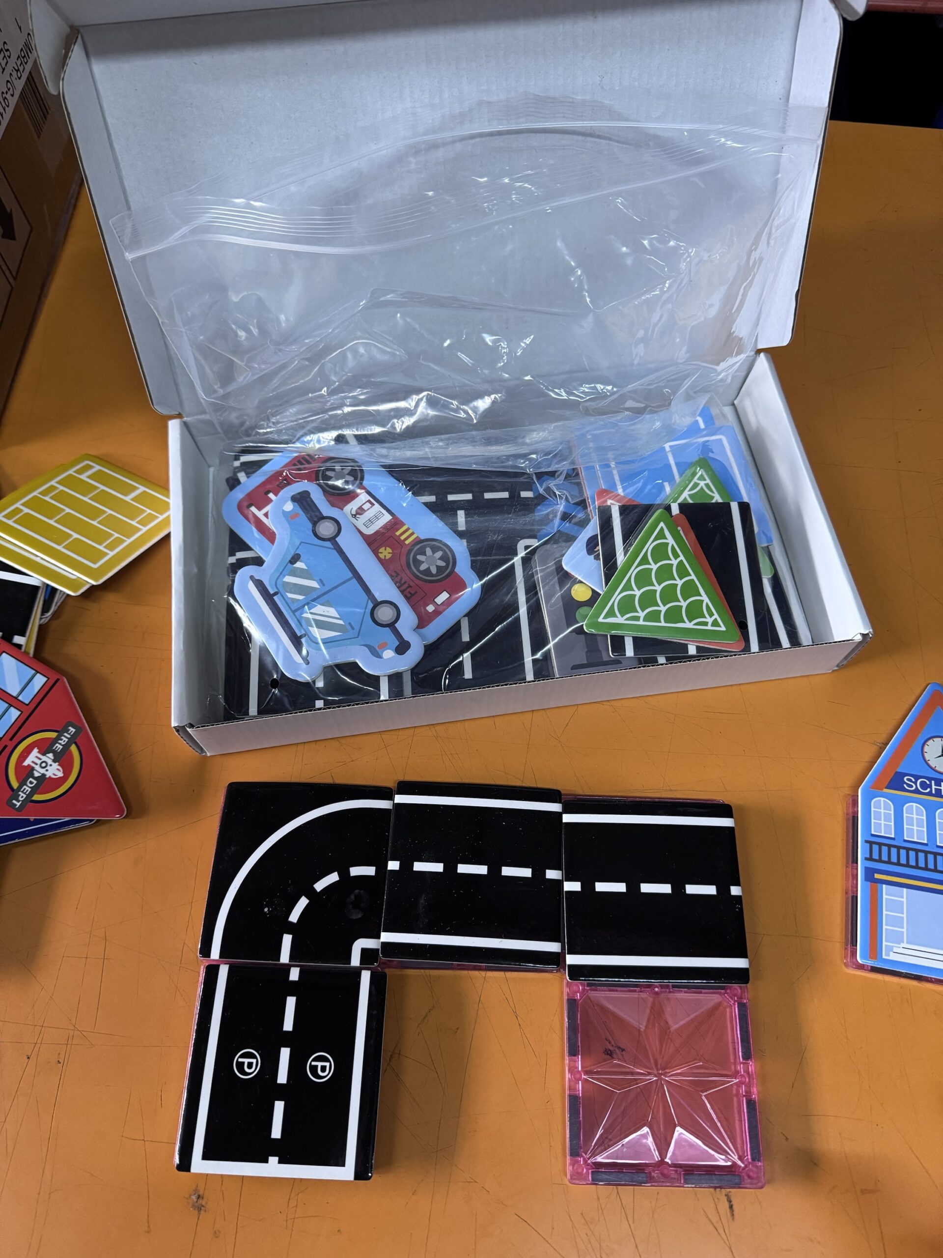 Viene con caminos, semáforos, estación de policía, colegio, bomberos, autos